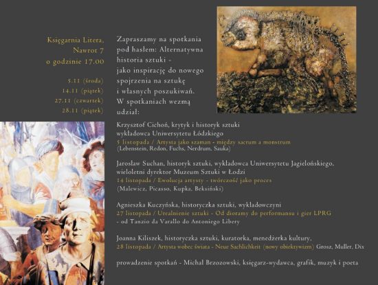 Spotkania odbędą się w Księgarni Litera w Łodzi, przy ul. Nawrot 7 w Łodzi