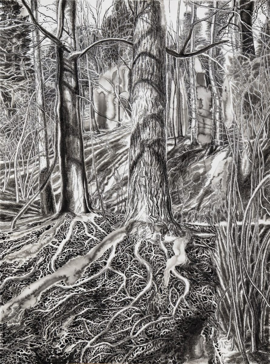 „W lesie i w pracy nad wizualną opowieścią o lesie doświadczam tego samego: czułości i surowości świata jednocześnie” – pisze artystka. – „Pochłania mnie praca nad detalem jako zbiorem mikrodoświadczeń, które składają się na opowieść o większym fragmencie rzeczywistości. Malarstwo i rysunek są dla mnie niczym las: przestrzeniami, w które wchodzimy, by odkrywać, przeżywać i interpretować świat na nowo”.