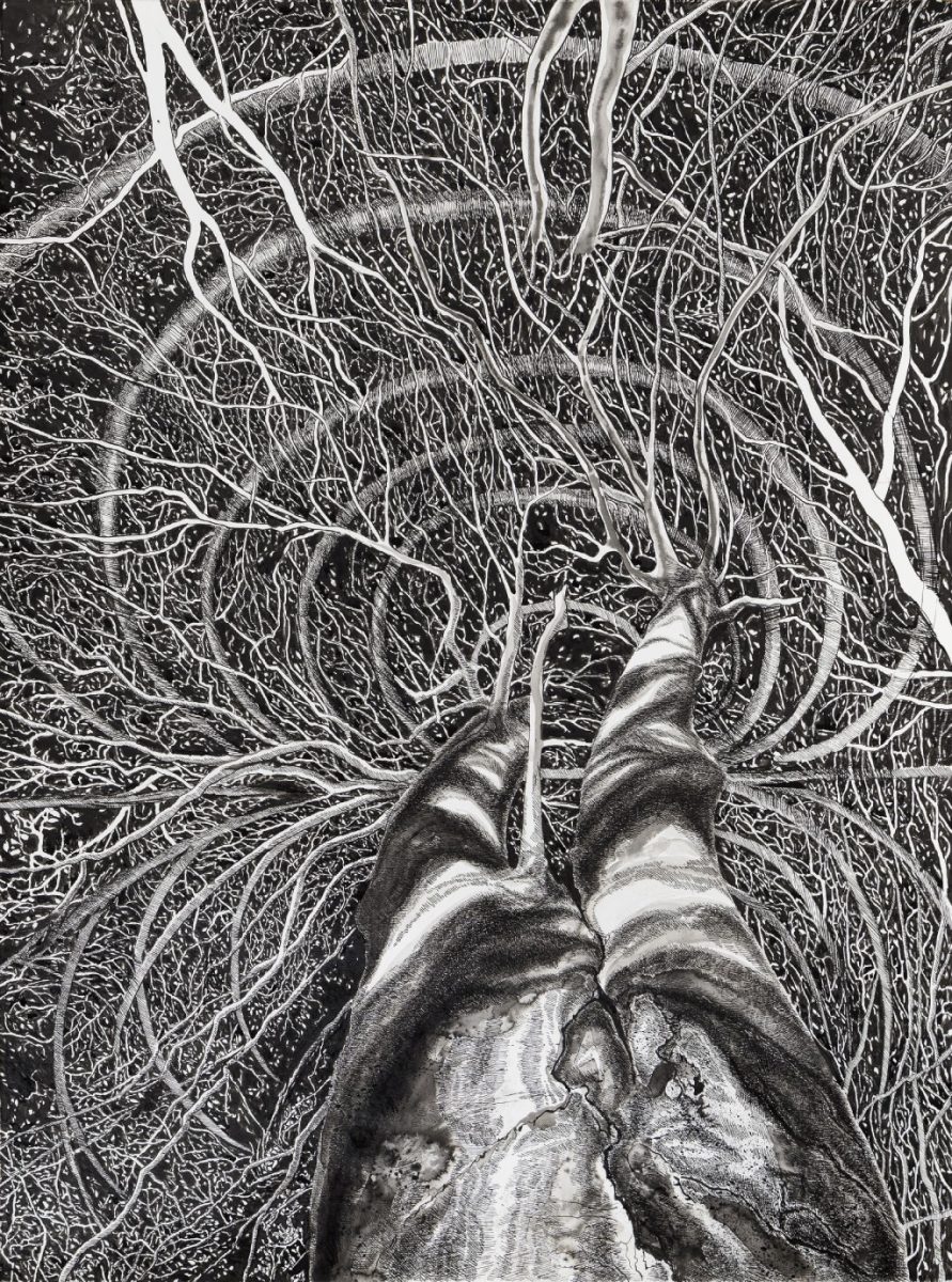 Autorka przedsięwzięcia pracuje naprzemiennie w kolorze i w gamie monochromatycznej, posługując się malarstwem olejnym oraz rysunkiem piórkiem i tuszem. W „Dendrozofii” zdecydowała się jednak na oszczędną skalę czerni i bieli. Ten świadomy wybór pozwolił jej połączyć prace analogowe i cyfrowe w spójną całość oraz „przefiltrować” doświadczenia zmysłowe, koncentrując uwagę na strukturze, rytmie i relacji.