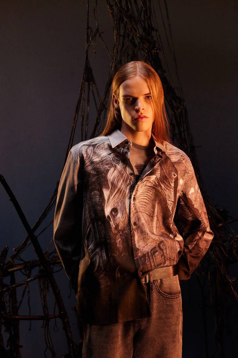 Ubrania zdobią motywy biologiczne, figury ludzkie w stanach transformacji, sny o końcu świata i obrazy architektury wyjęte z dystopijnych wizji. W tej edycji pojawiły się również projekty z reprodukcjami rysunków Beksińskiego. Subtelniejsze, ale równie niepokojące jak jego obrazy. Czarno-białe kompozycje, pełne precyzji, symbolizmu i psychologicznej głębi, znalazły nowe życie na tkaninach, stając się formą dialogu między sztuką a ciałem. Te minimalistyczne, a jednocześnie ekspresyjne i surrealistyczne grafiki oferują inny, równie sugestywny wymiar obcowania z twórczością artysty.