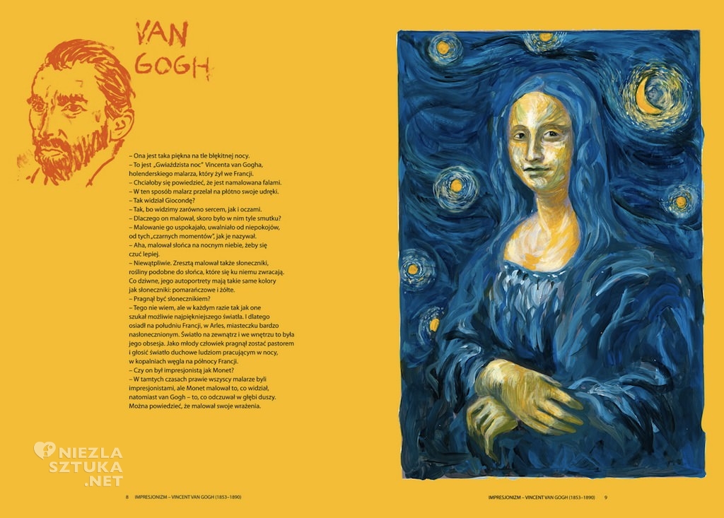Barsony jest naszym przewodnikiem. W prosty sposób opowiada, kim byli wielcy malarze i na czym polegał ich styl. To właśnie Barsony namalował te obrazy tak, jakby to zrobili artyści, o których opowiada. Efekt jest niezwykły! Historie Mona Lizy to świetne wprowadzenie do sztuki współczesnej i nowoczesnej. Książka dla dzieci (od 10. roku życia) i dorosłych.