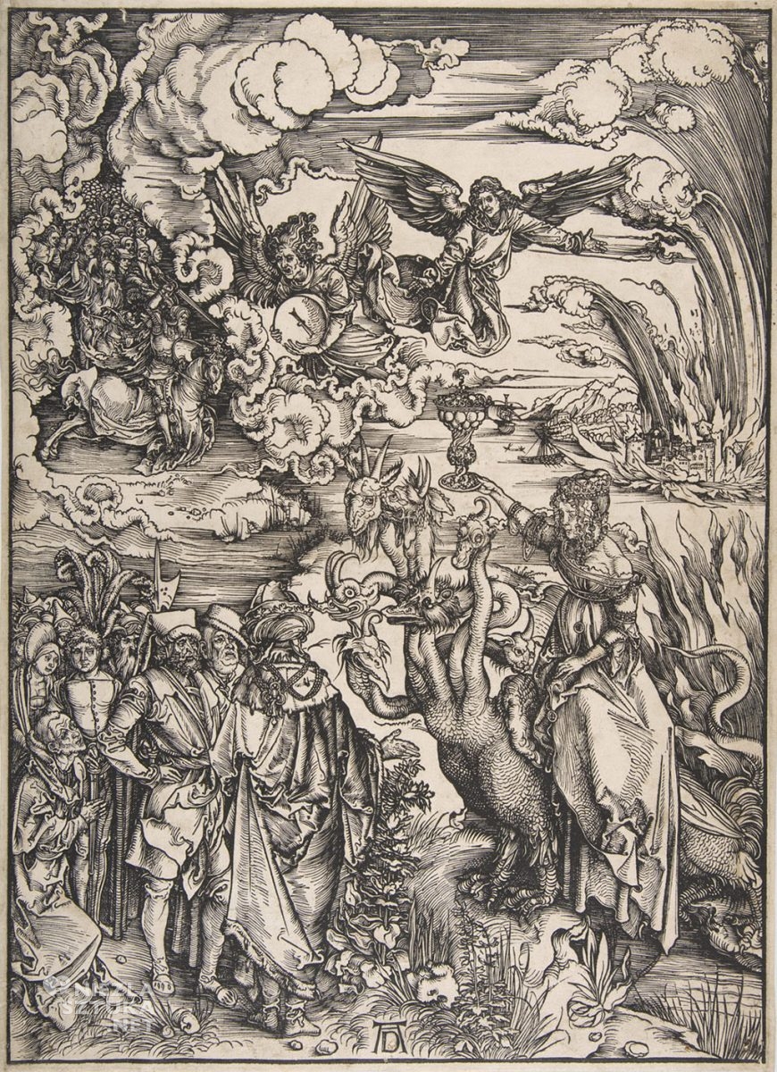 Taki typ przedstawienia, bardziej realistyczny, bardziej czytelny, mniej wizyjny i mniej hermetyczny zaproponował kilka stuleci później Albrecht Dürer w swojej Apokalipsie, wydanej po raz pierwszy w 1498 roku (drugie wydanie pojawiło się w 1511 roku)2.