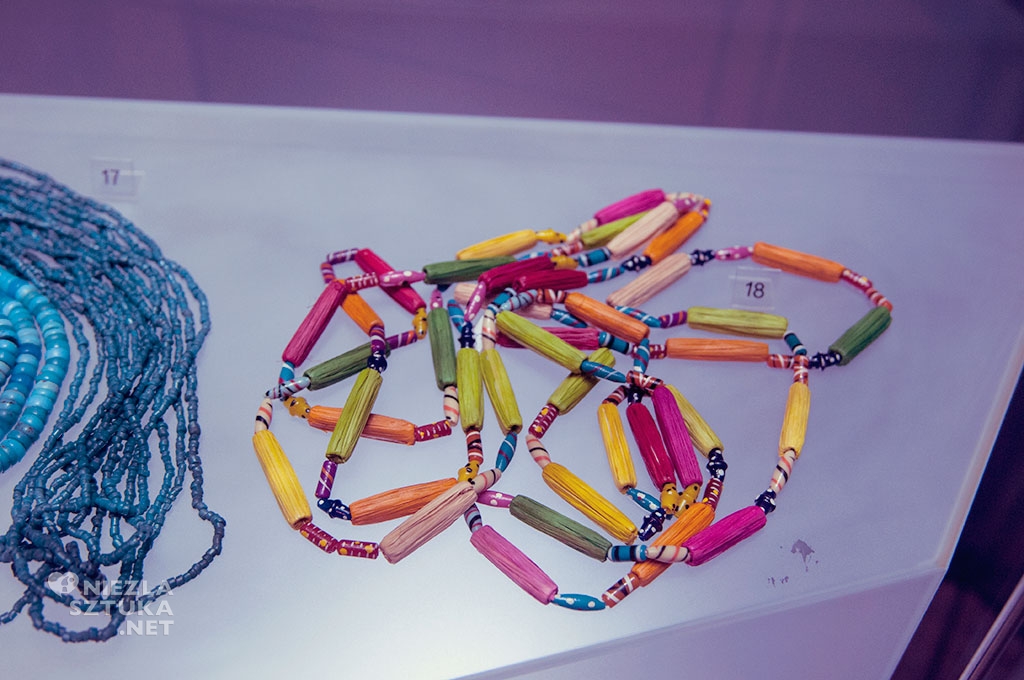 Muzeum Bursztynu zrobiło na mnie niezwykle silne wrażenie. Chłód gotycko-renesansowego budynku, który kiedyś był więzieniem i katownią, od środka ociepla miodowy kolor bursztynu witający nas z nowoczesnych gablot. Wspinam się po kolejnych piętrach kamiennych schodów więziennej wieży, pokonując również podróż w czasie, bo każde piętro prezentuje zupełnie inną epokę. Wędruję tak aż do nowoczesnej biżuterii. Ale tak naprawdę przyszłam tu zupełnie w innej sprawie. W jednej z sal powinna być wystawa Biżuterii świata przywiezionej przez Elżbietę Dzikowską z jej wypraw. Błądzę korytarzami, aż wreszcie znajduję maleńką salę. Jest tak ciekawie urządzona, że warto było pokonać te 350 km, by to zobaczyć. Podziwiam naszyjniki ze słomy, ogromne muszle, gigantyczne różańce.
