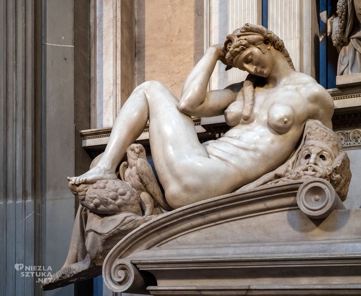 Dziś, w świetle lamp elektrycznych, widzimy potęgę artysty, jego wielki wysiłek, metaforę życia i śmierci. Nieodwracalność. Chyba dopiero potem dostrzegamy Medyceuszy. Mistrz się nie mylił. Osobiście znał Lorenza i Giuliana, a jednak nie zdecydował się na sportretowanie żadnego z nich. Uznał – tak wyjaśniał – że w zaświatach kwestia wyglądu jest nieistotna, gdyż potomni mają zobaczyć charakter, a nie oblicze doczesne. Ważny jest zatem nastrój kontemplacji i wiecznego rozmyślania.