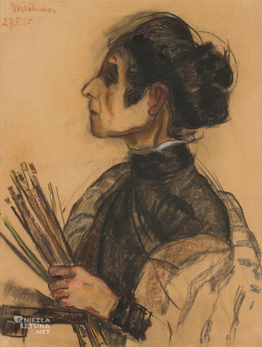 Olga Boznańska była otoczona osobami zarówno starszymi od siebie, jak i młodszymi, tak jakby czas nie miał aż takiego znaczenia jak sztuka. Do jej pracowni przychodziło bardzo wiele różnych osób, a znaczna część emigrantów zaczynała swój pobyt w Paryżu właśnie od wizyty u malarki. Na tym tle wyróżnia się Wanda Chełmońska z matką, Marią z Korwin-Szymanowskich. Kobieta sama wychowywała najmłodszą córkę, po tym jak jej mąż Józef Chełmoński oskarżył ją o zdradę. Spokrewniona z Władysławem Ślewińskim i Wojciechem Gersonem, została redaktorką naczelną „Kuriera Niedzielnego” i „Bluszczu”, a z czasem założyła własne wydawnictwo. Gdy jej córka Wanda zaczęła wykazywać talent malarski, zdecydowała się przeprowadzić wraz z nią do Paryża. Do pracowni Boznańskiej przyszły razem około 1913 roku22. Trzy lata później artystka namalowała portret Wandy: świetlisty, jasny, delikatny, odpowiedni do ukazania wdzięku młodej kobiety. Po latach, w 1925 roku, Wanda Chełmońska odwdzięczyła się, malując portret Boznańskiej. Obraz pastelami powstał na podstawie zdjęcia z 1920 roku, wykonanego w pracowni w Krakowie, jednak są zasadnicze różnice między fotografią a wizją artystki. Wyżej uniesiony podbródek, inna linia prawej ręki dodają artystce majestatu i dumy, świadczą także o świadomym zamyśle Chełmońskiej.