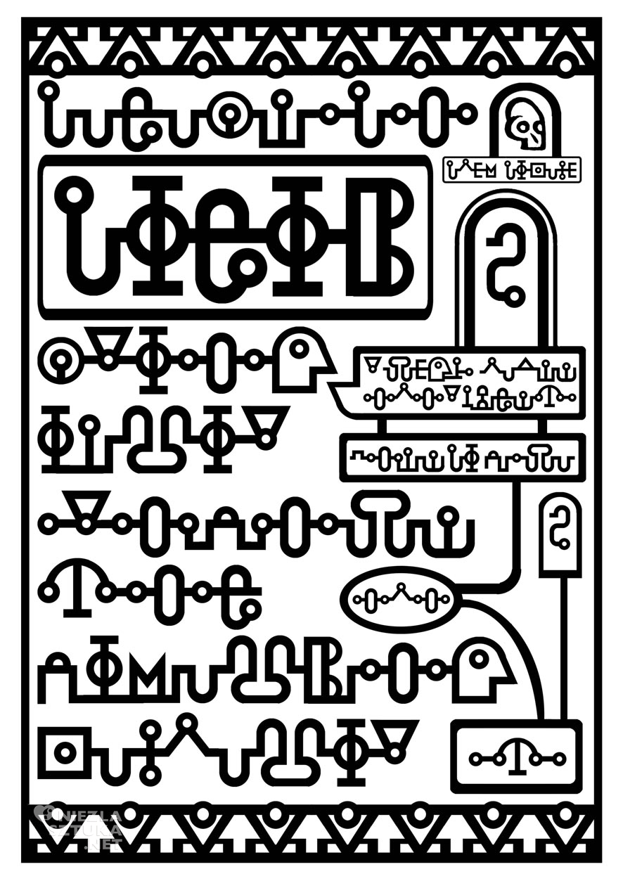 Symbolika prac odzwierciedlona jest także przez pojawiające się w obrazach teksty zapisane wymyślonym przez autora alfabetem.