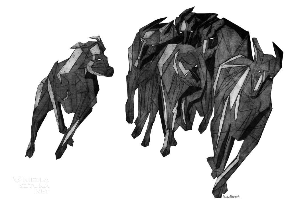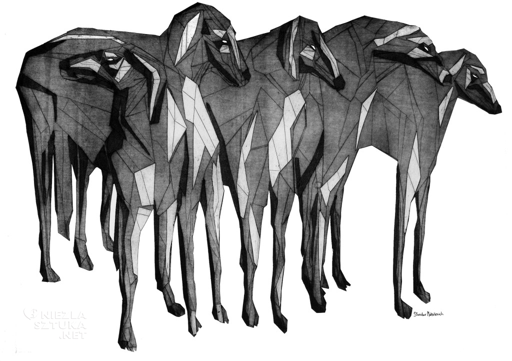 Czarno-biały świat grafik Stanislava Matsilevicha urzekł nas od pierwszego wrażenia. Częstym elementem jego twórczości jest pies. Chociaż motyw wydawało by się ograny i znany z historii sztuki, tu pokazany z dużą dozą oryginalności. Styl nawiązujący do kubizmu czy rosyjskiego modernizmu dynamizuje przedstawienie i wyostrza. Psy o wyglądzie arystokratycznych chartów zmieniają się w bestie zatopione w dzikim pościgu. Niektóre z przedstawień wydają się przypominać ascetyczny styl rosyjskiej ilustracji.