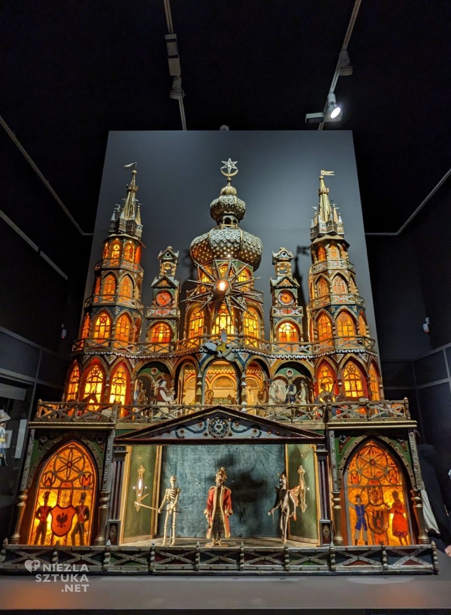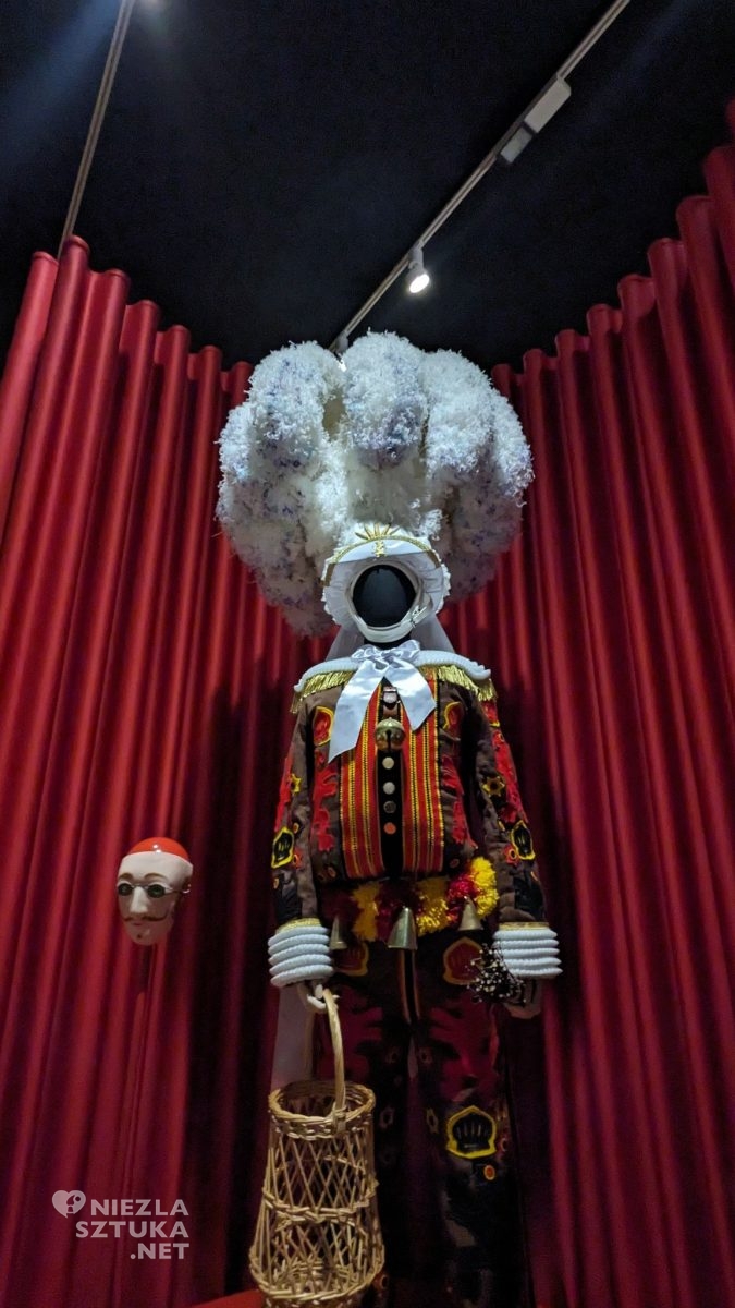 Teatralna scenografia zmienia przestrzeń kilku sal, które tak dobrze znamy, w zupełnie niezwykłe tło dla wystawy, a sama wystawa staje się wielką metaforą świata. Maski, kotary, gabloty z lalkami znakomicie dopełniają dzieł tych dwóch artystów.
