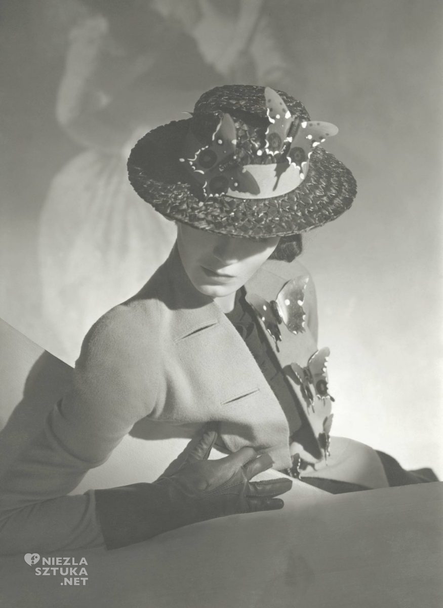 Elsa Schiaparelli w stroju jej autorstwa, fot. George Hoyningen-Huene dla „Vogue’a” | 1932, źródło: Musée des Arts décoratifs, Paryż